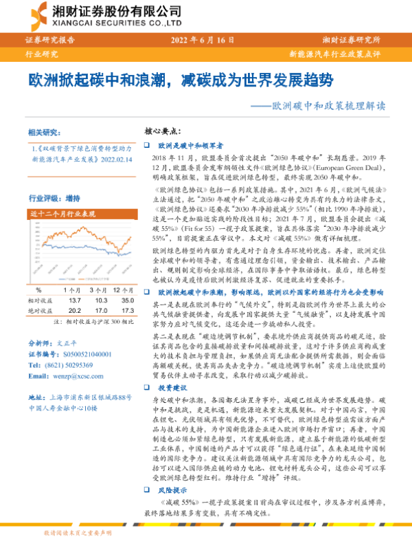 【湘财证券】【20220616】20220616-湘财证券-新能源汽车行业政策点评:欧洲碳中和政策梳理解读:欧洲掀起碳中和浪潮,减碳成为世界发展趋势-7页