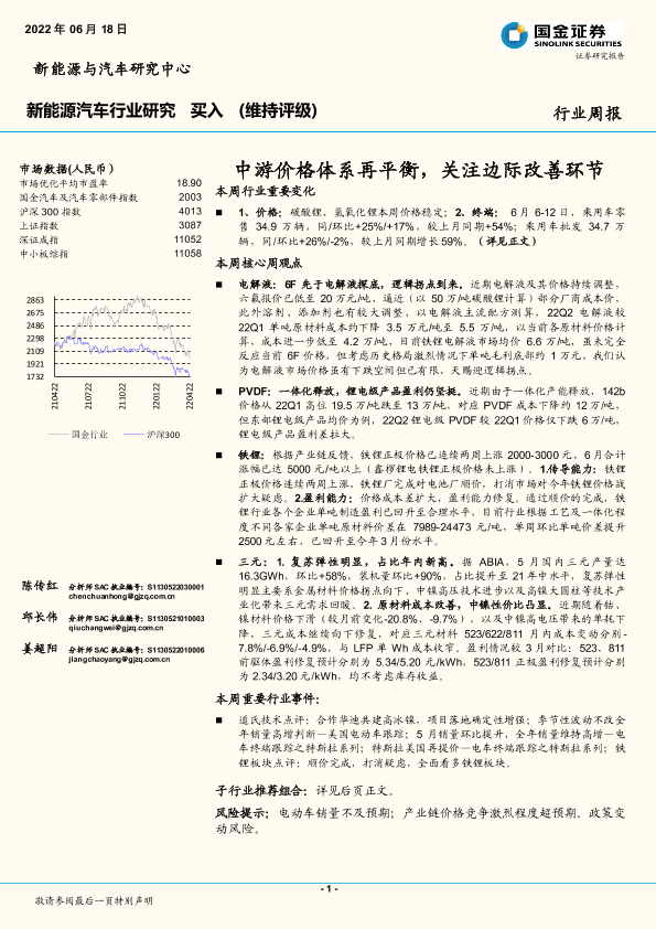 【国金证券】【20220618】20220618-国金证券-新能源汽车行业研究:中游价格体系再平衡,关注边际改善环节-10页
