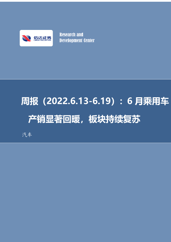 【信达证券】【20220614】20220619-信达证券-汽车行业周报:6月乘用车产销显著回暖,板块持续复苏-17页
