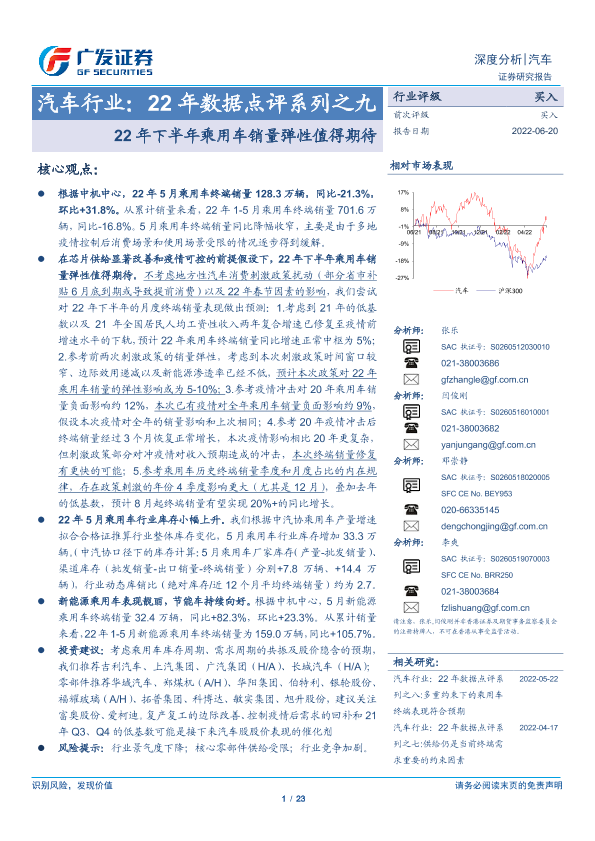 【广发证券】【20220620】汽车行业:22年数据点评系列之九-22年下半年乘用车销量弹性值得期待-23页