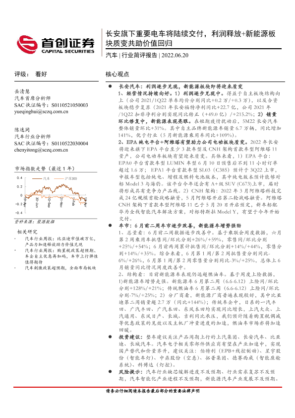 【首创证券】【20220620】长安旗下重要电车将陆续交付,利润释放+新能源板块质变共助价值回归-13页