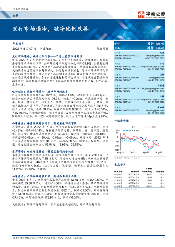 【华泰证券】【20220807】金融行业月报:发行市场遇冷,破净比例改善-23页