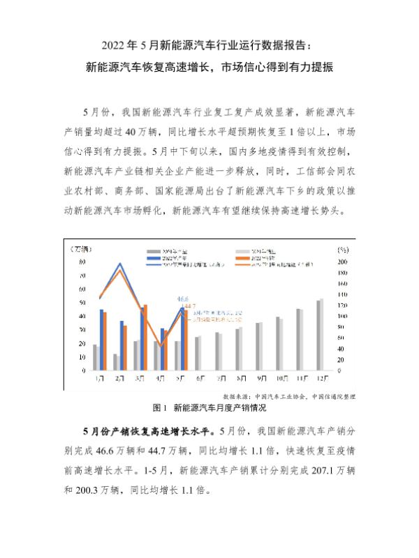 【中国信通院】【20220623】2022年5月新能源汽车行业运行数据报告:新能源汽车恢复高速增长,市场信心得到有力提振-4页