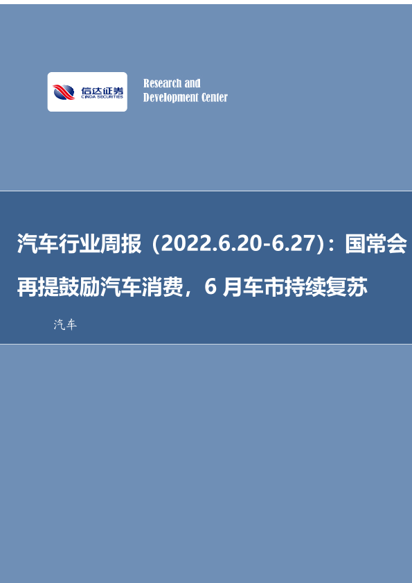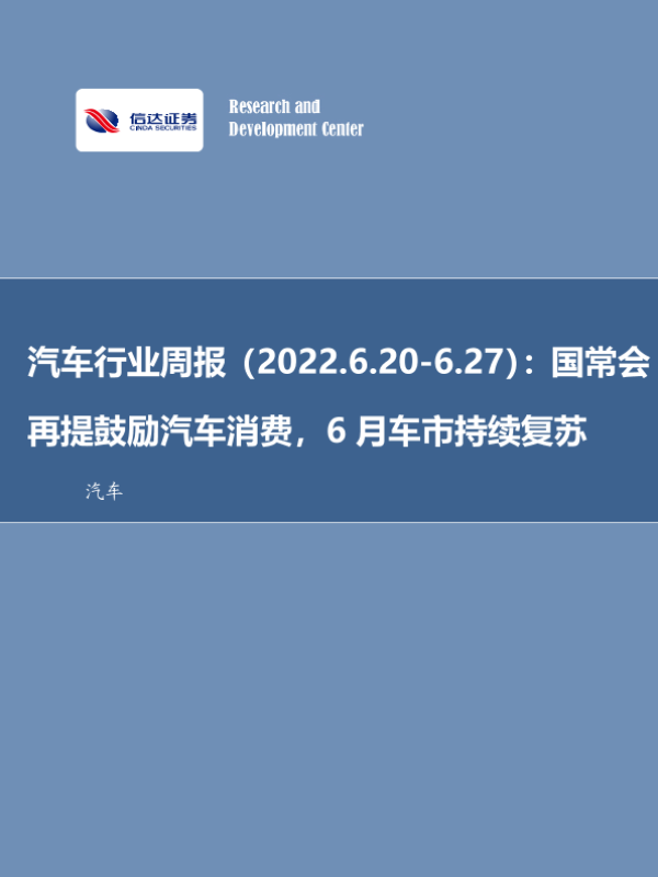 【信达证券】【20220621】20220626-信达证券-汽车行业周报:国常会再提鼓励汽车消费,6月车市持续复苏-16页