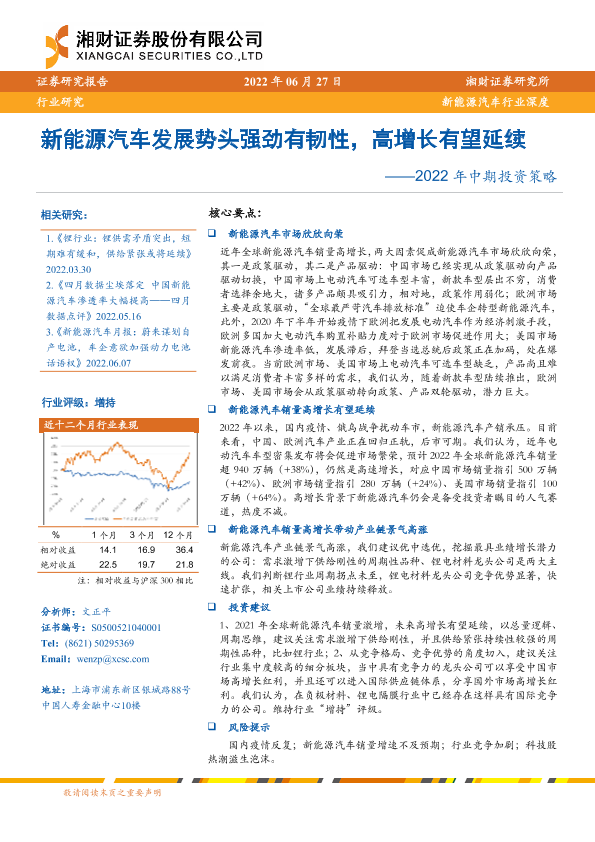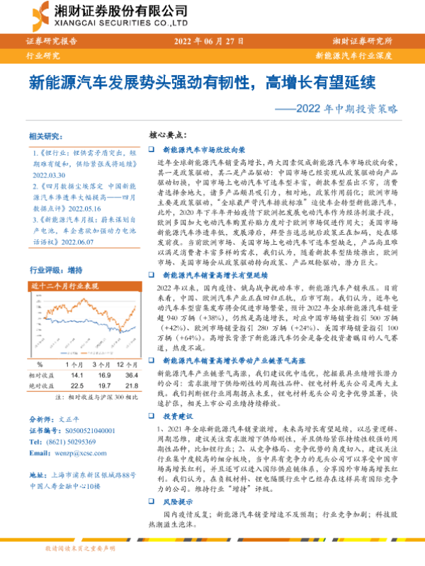 【湘财证券】【20220627】新能源汽车发展势头强劲有韧性,高增长有望延续——2022年中期投资策略-31页
