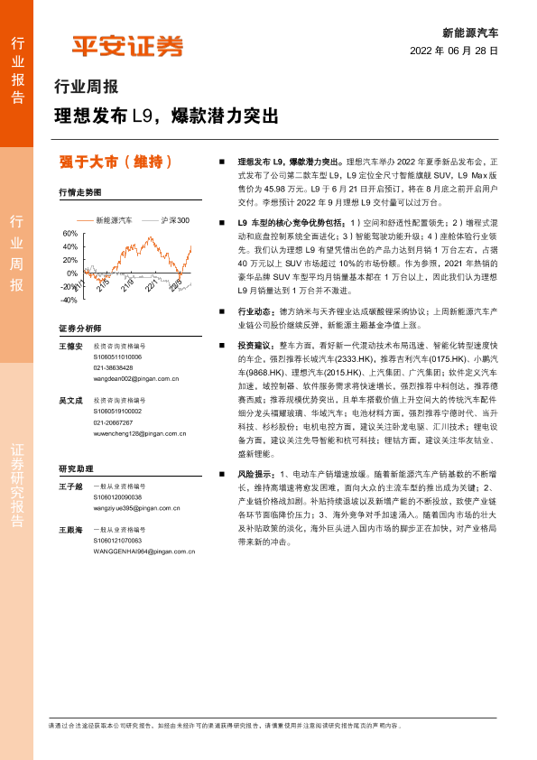 【平安证券】【20220628】20220628-平安证券-新能源汽车行业周报:理想发布L9,爆款潜力突出-10页