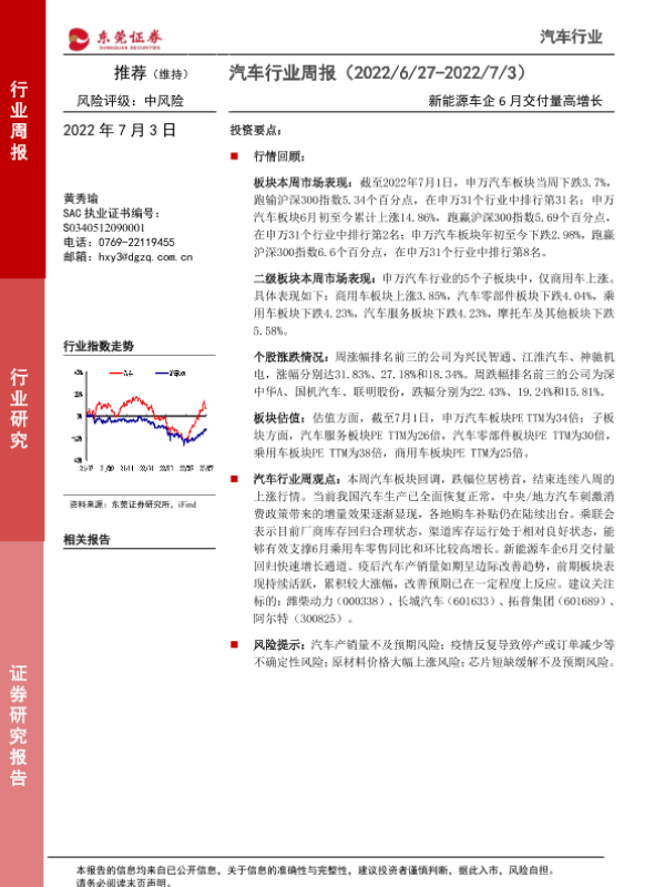 【东莞证券】【20220703】汽车行业周报:新能源车企6月交付量高增长-11页