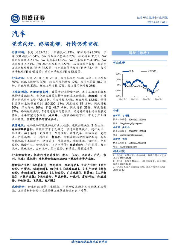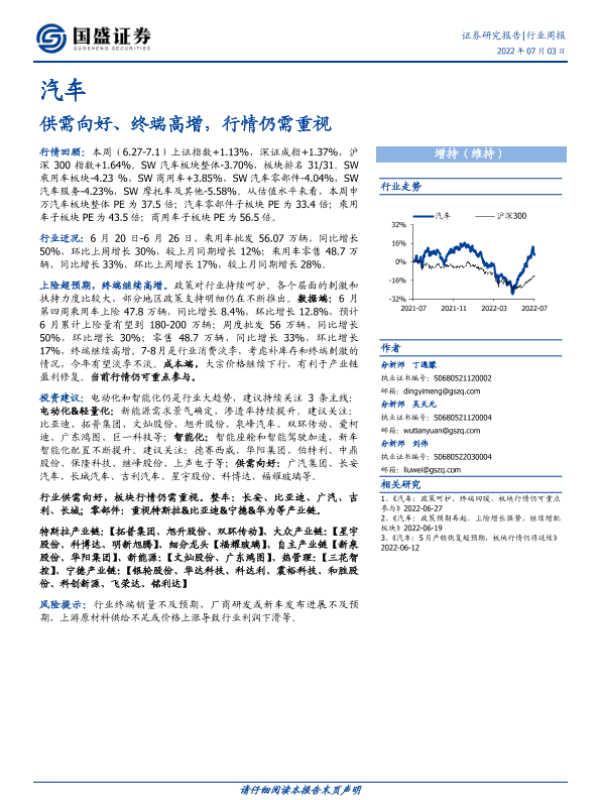 【国盛证券】【20220703】20220703-国盛证券-汽车行业周报:供需向好、终端高增,行情仍需重视-22页