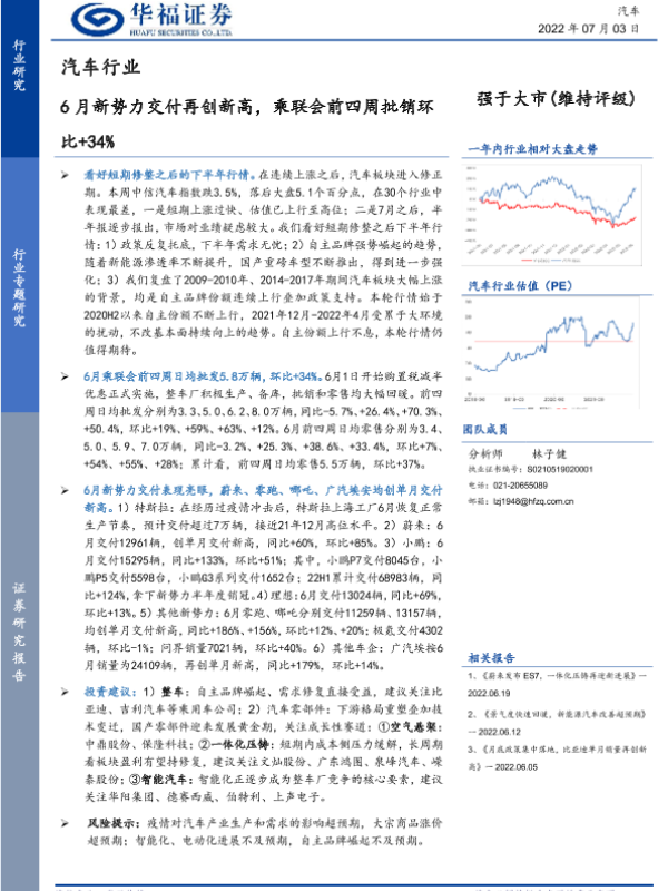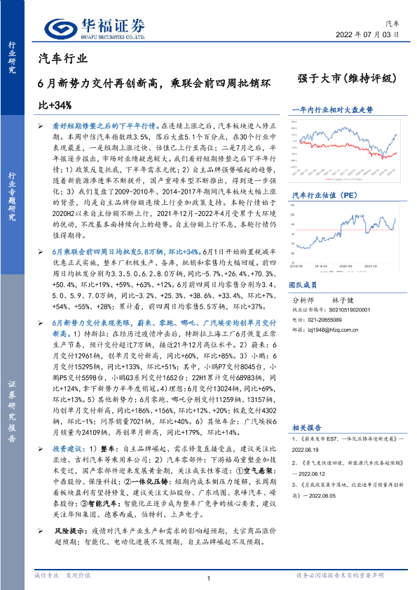 【华福证券】【20220703】汽车行业:6月新势力交付再创新高,乘联会前四周批销环比+34%-9页