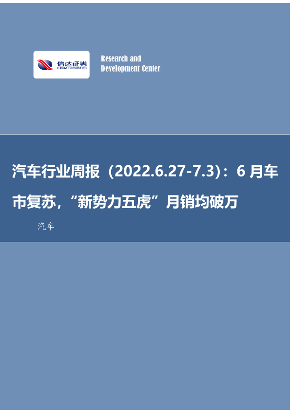 【信达证券】【20220703】20220703-信达证券-汽车行业周报:6月车市复苏,“新势力五虎”月销均破万-16页