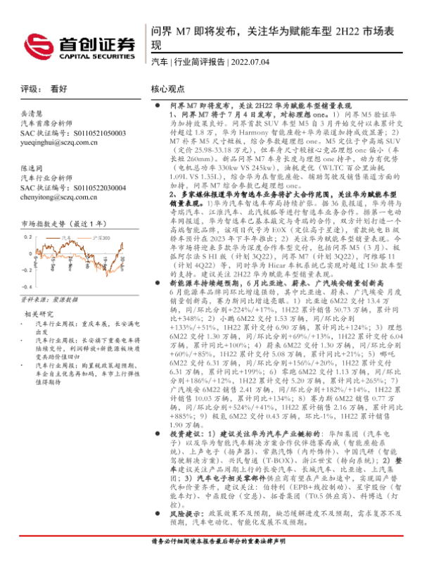 【首创证券】【20220704】20220704-首创证券-汽车行业简评报告:问界M7即将发布,关注华为赋能车型2H22市场表现-12页