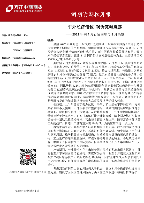 【方正中期期货】【20220805】铜期货期权月报-41页