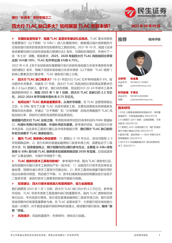 【民生证券】【20220809】银行业“补资本”系列专题之二:四大行TLAC缺口多大?如何展望TLAC非资本债?-25页