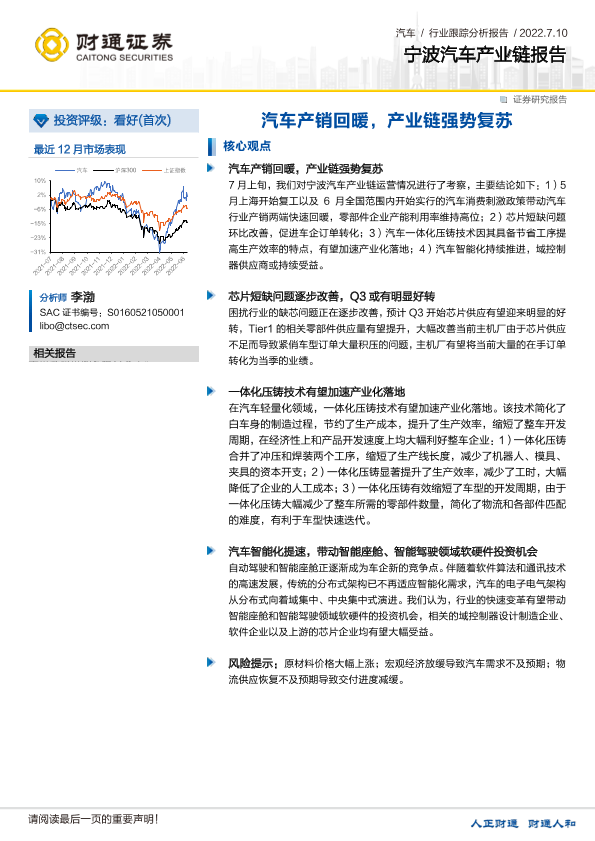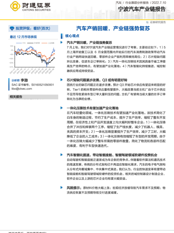 【财通证券】【20220710】20220710-财通证券-宁波汽车产业链报告:汽车产销回暖,产业链强势复苏-2页