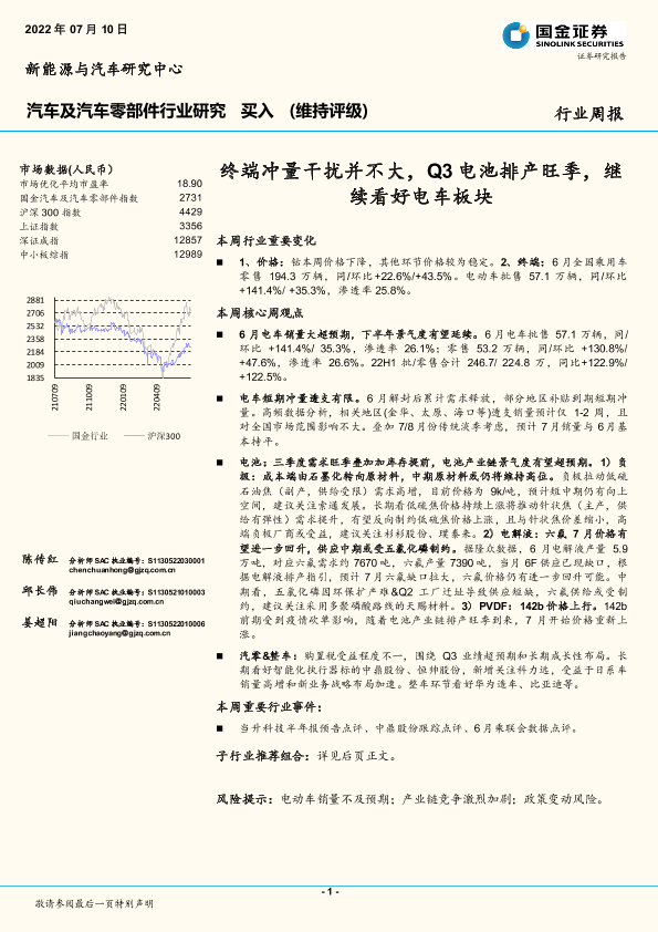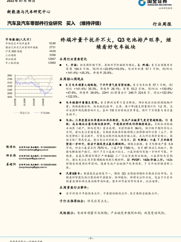 【国金证券】【20220710】汽车及汽车零部件行业研究:终端冲量干扰并不大,Q3电池排产旺季,继续看好电车板块-9页