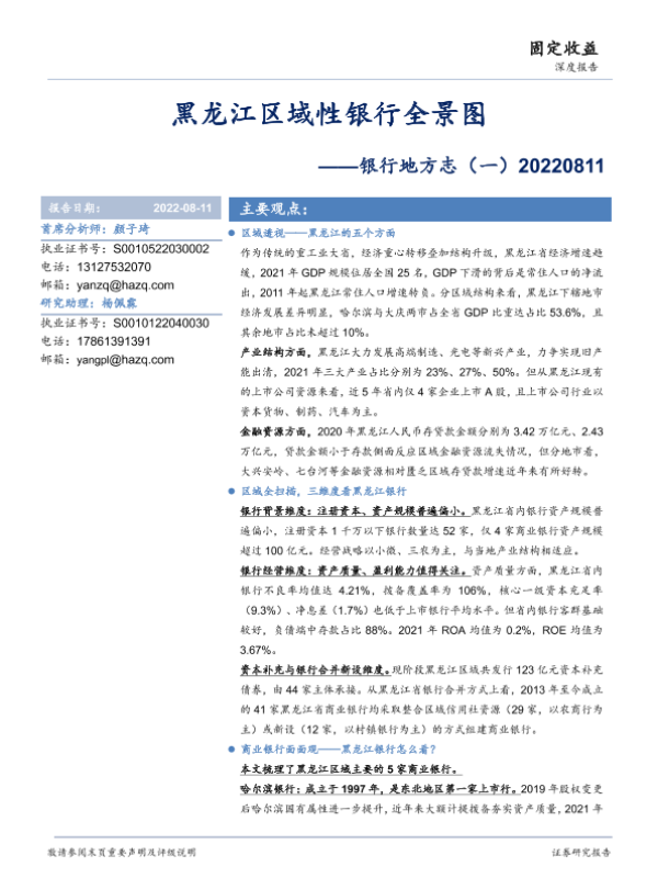【华安证券】【20220811】银行地方志(一):黑龙江区域性银行全景图-32页