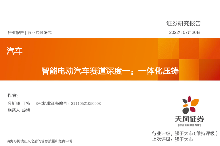 【天风证券】【20220720】智能电动汽车赛道深度一:一体化压铸-39页
