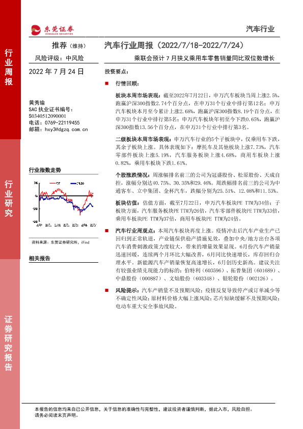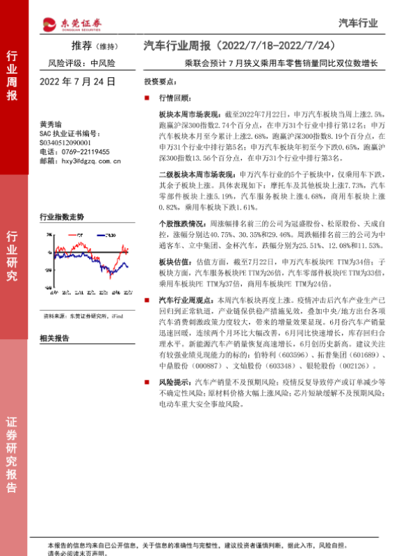 【东莞证券】【20220724】20220724-东莞证券-汽车行业周报:乘联会预计7月狭义乘用车零售销量同比双位数增长-11页