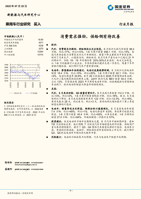 【国金证券】【20220722】20220722-国金证券-乘用车行业研究:消费需求强劲,供给侧有待改善-11页