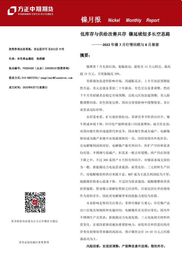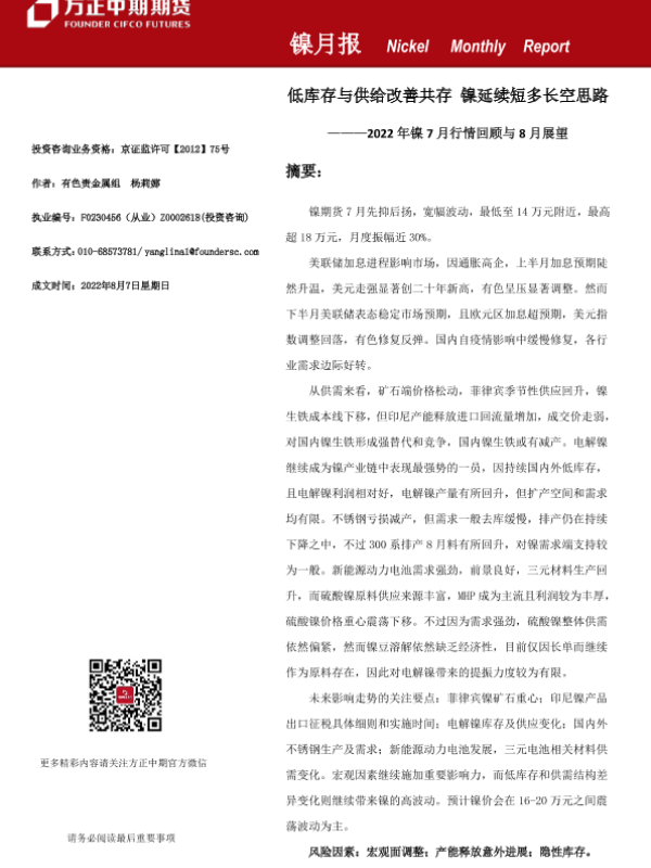 【方正中期期货】【20220807】镍月报-20220807-方正中期期货-25页