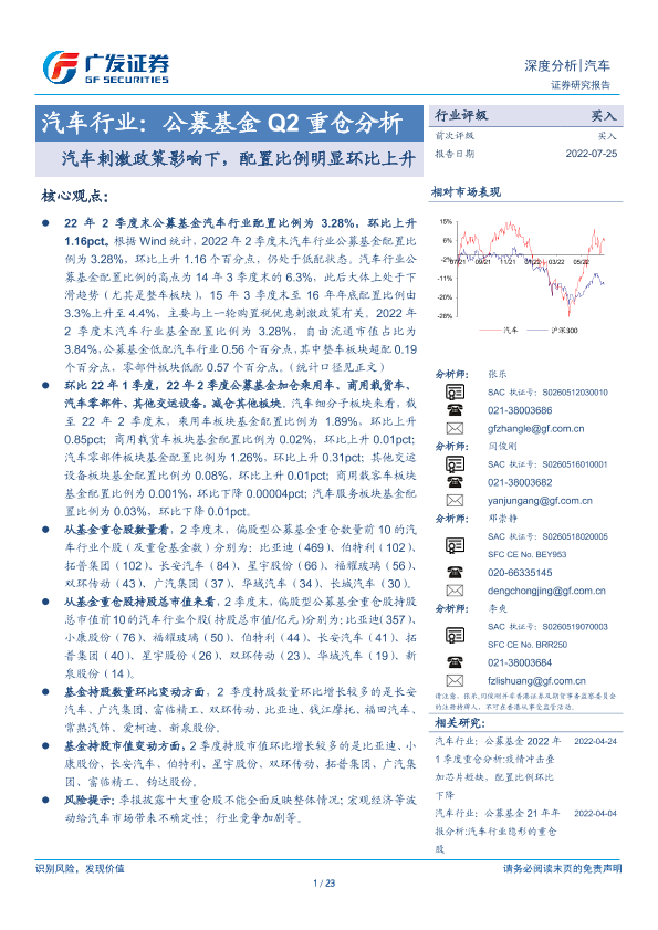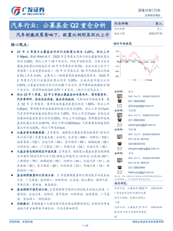 【广发证券】【20220725】汽车行业:公募基金 Q2重仓分析-23页