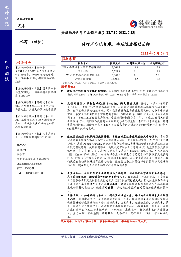 【兴业证券】【20220724】疫情利空已兑现,特斯拉迎强劲反弹-16页