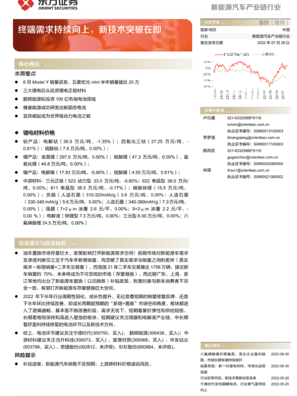 【东方证券】【20220726】20220726-东方证券-新能源汽车产业链行业周报:终端需求持续向上,新技术突破在即-14页