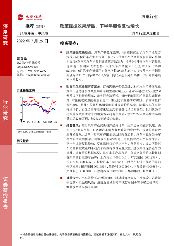 【东莞证券】【20220729】汽车行业深度报告:政策提振效果渐显,下半年迎恢复性增长-21页