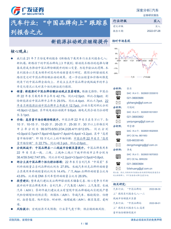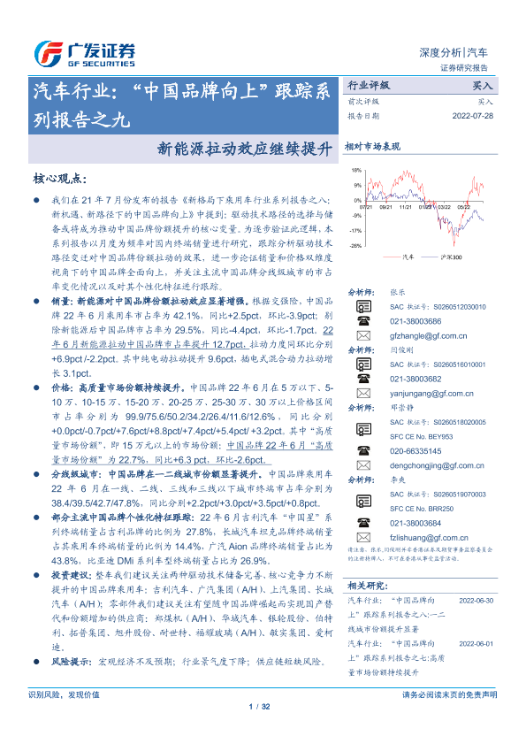 【广发证券】【20220728】汽车行业:“中国品牌向上”跟踪系列报告之九:新能源拉动效应继续提升-32页