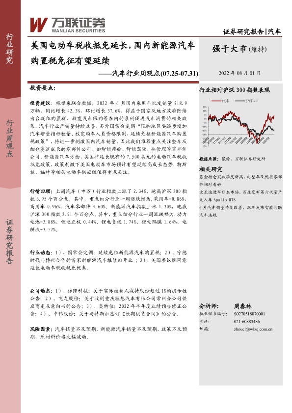 【万联证券】【20220801】美国电动车税收抵免延长,国内新能源汽车购置税免征有望延续-10页