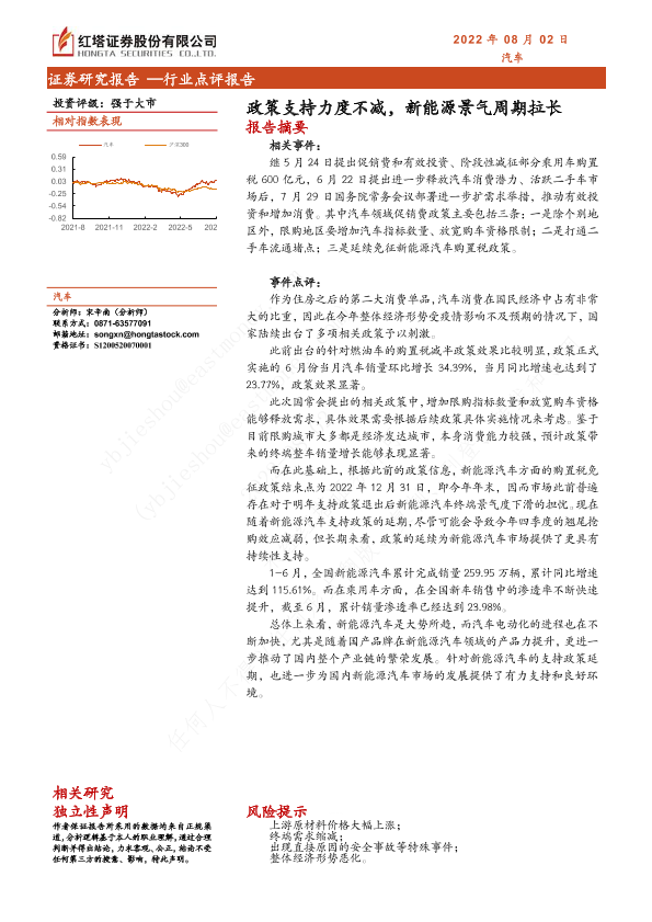 市场分析 投资评级 政策支持 新能源汽车 汽车行业