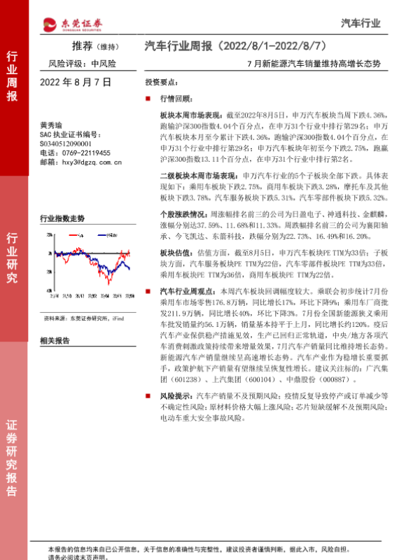 【东莞证券】【20220807】汽车行业周报:7月新能源汽车销量维持高增长态势-11页
