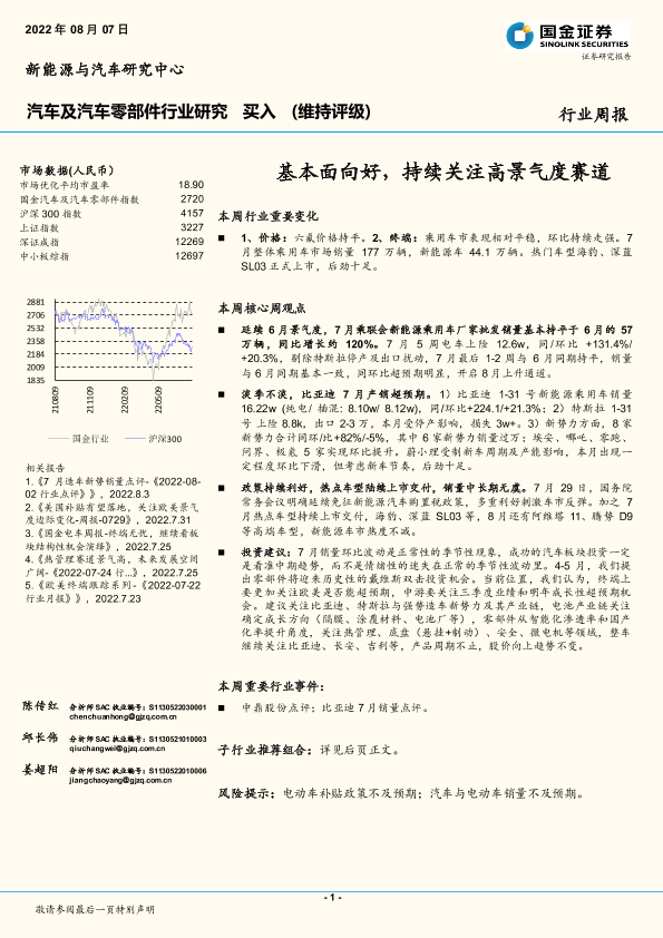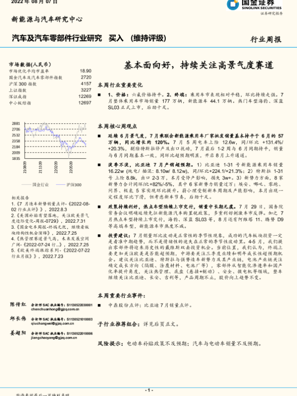 【国金证券】【20220807】汽车及汽车零部件行业研究:基本面向好,持续关注高景气度赛道-15页