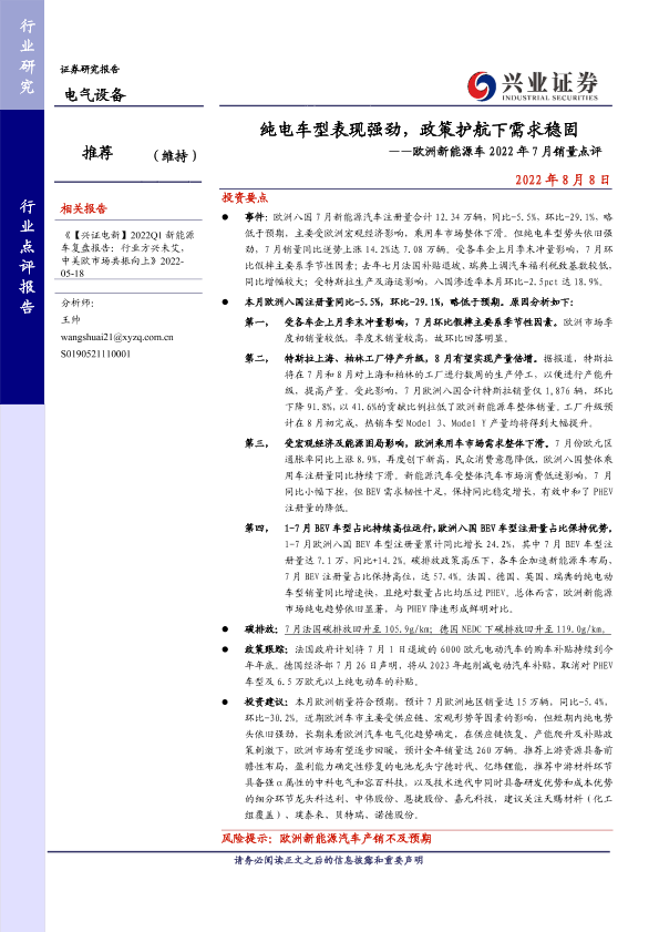 【兴业证券】【20220808】纯电车型表现强劲,政策护航下需求稳固——欧洲新能源车2022年7月销量点评-12页