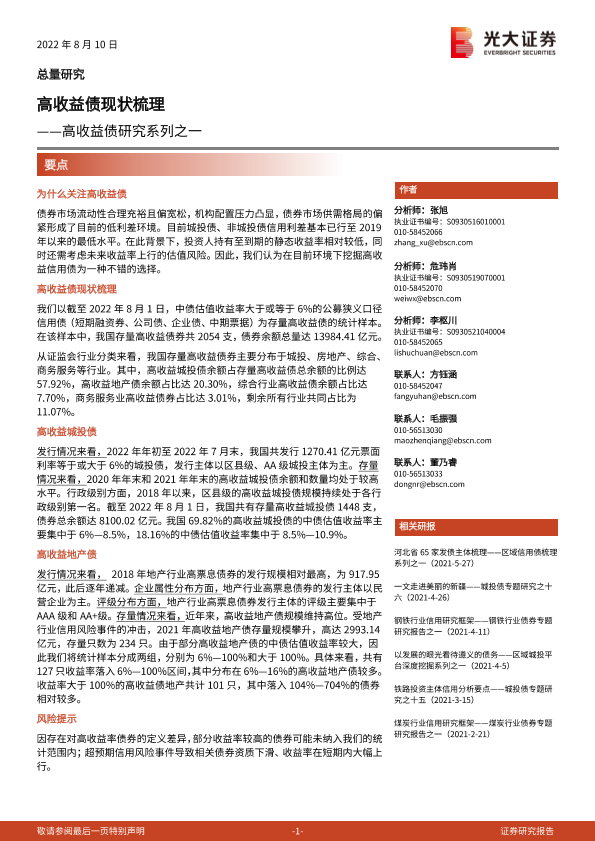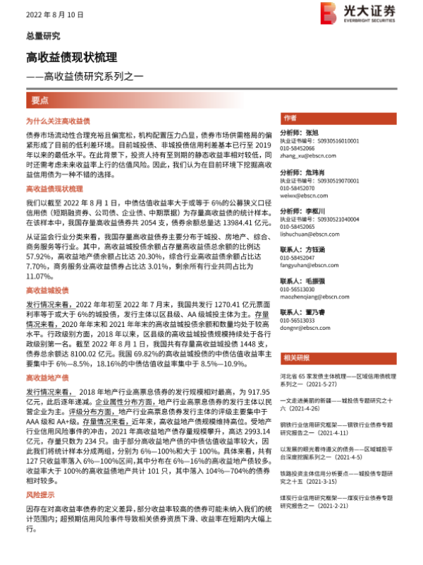 【光大证券】【20220810】高收益债研究系列之一:高收益债现状梳理-21页