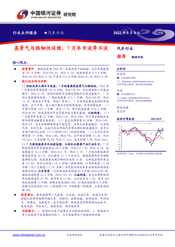 【银河证券】【20220809】汽车行业:高景气与强韧性延续,7月车市淡季不淡-2页