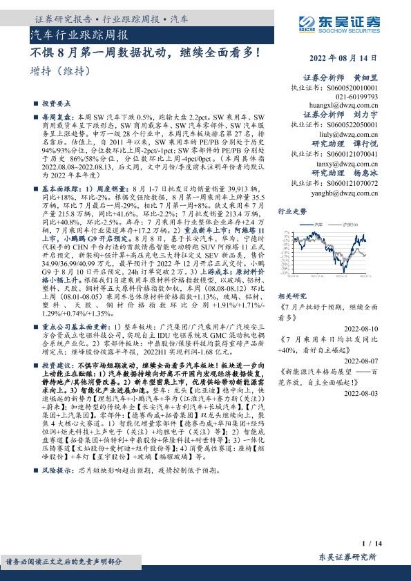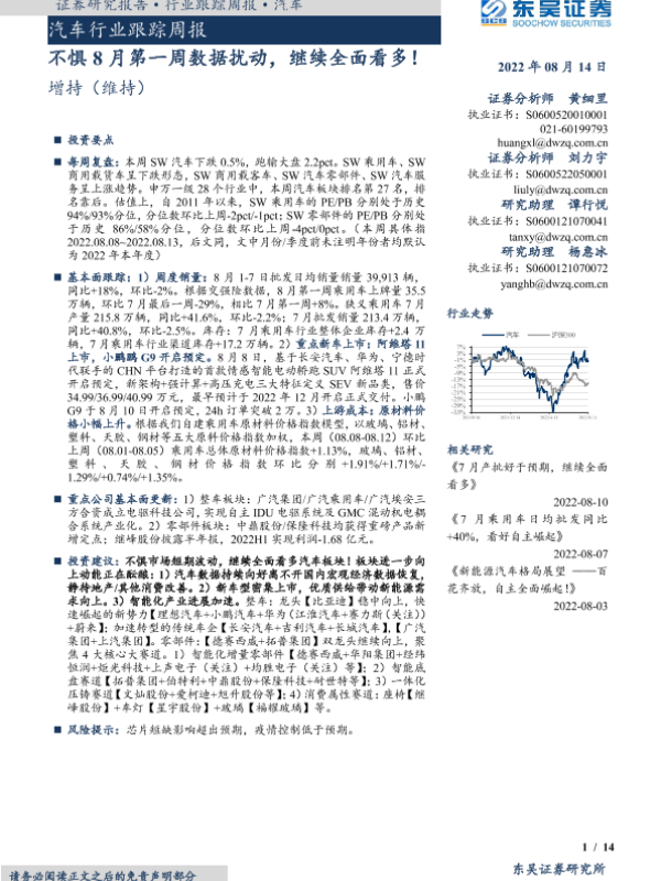 【东吴证券】【20220814】汽车行业跟踪周报:不惧8月第一周数据扰动,继续全面看多!-14页