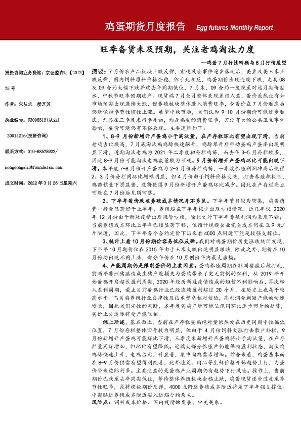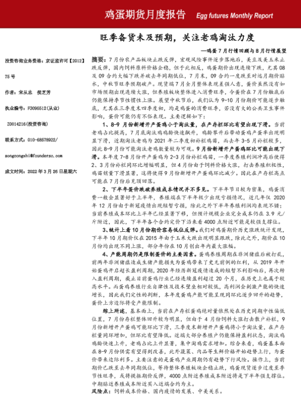【方正中期期货】【20220808】鸡蛋期货月度报告-20页