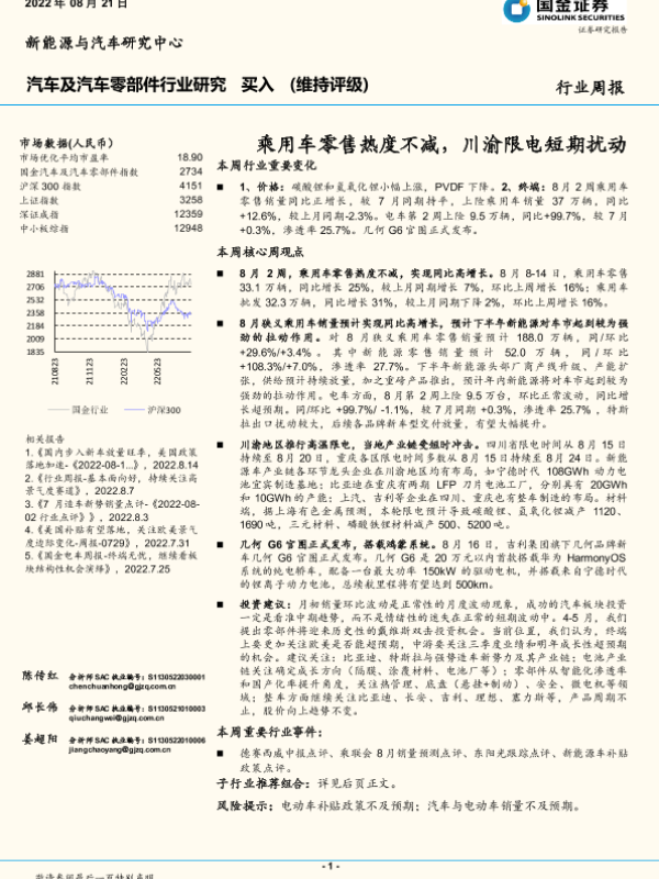 【国金证券】【20220821】汽车及汽车零部件行业研究:乘用车零售热度不减,川渝限电短期扰动-10页
