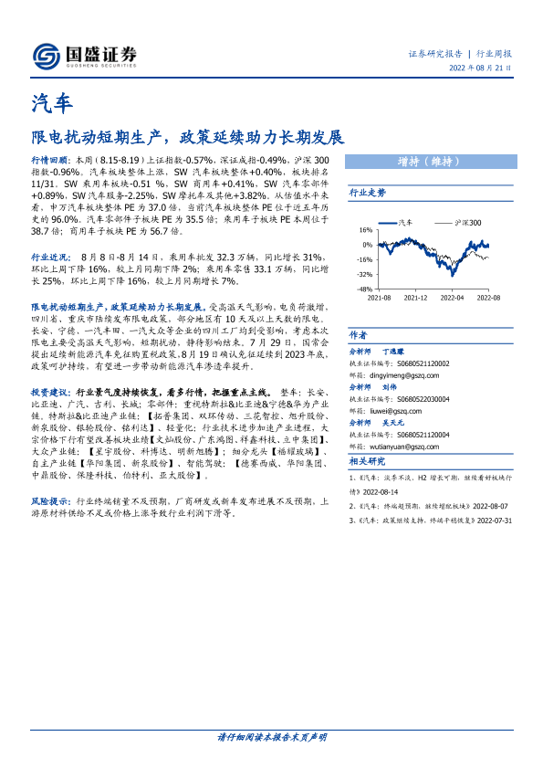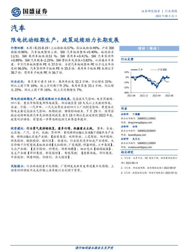 【国盛证券】【20220821】汽车行业周报:限电扰动短期生产,政策延续助力长期发展-23页