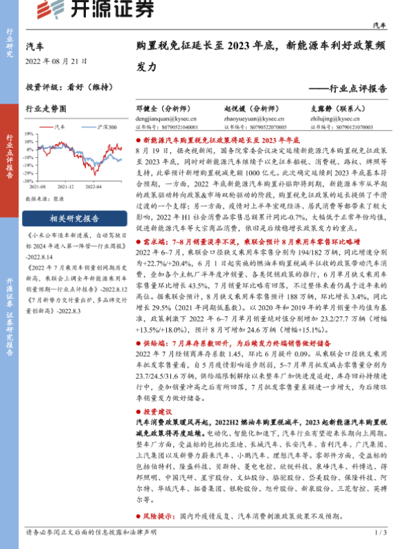 【开源证券】【20220821】汽车行业点评报告:购置税免征延长至2023年底,新能源车利好政策频发力-3页
