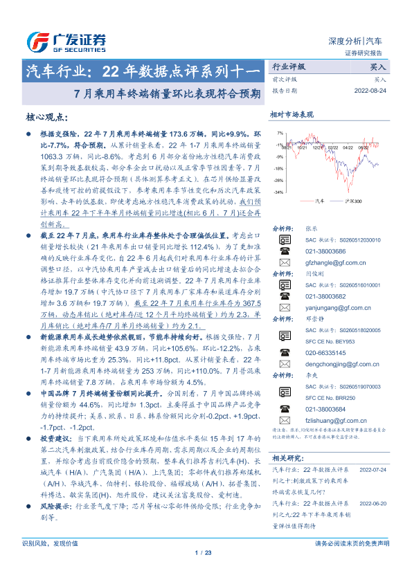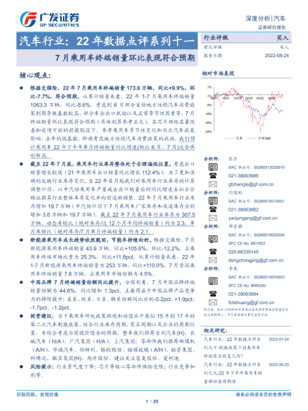 【广发证券】【20220824】22年数据点评系列十一:7月乘用车终端销量环比表现符合预期-23页