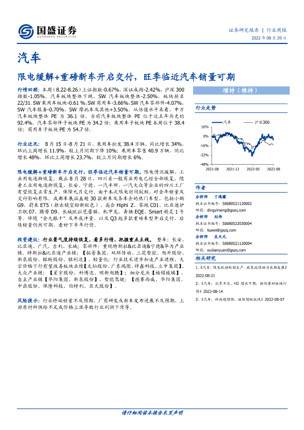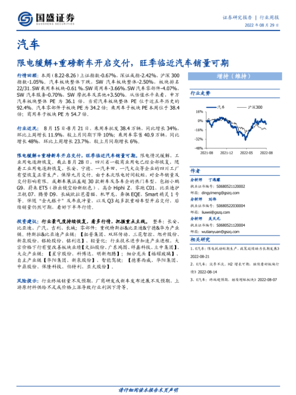 【国盛证券】【20220829】汽车行业周报:限电缓解+重磅新车开启交付,旺季临近汽车销量可期-25页