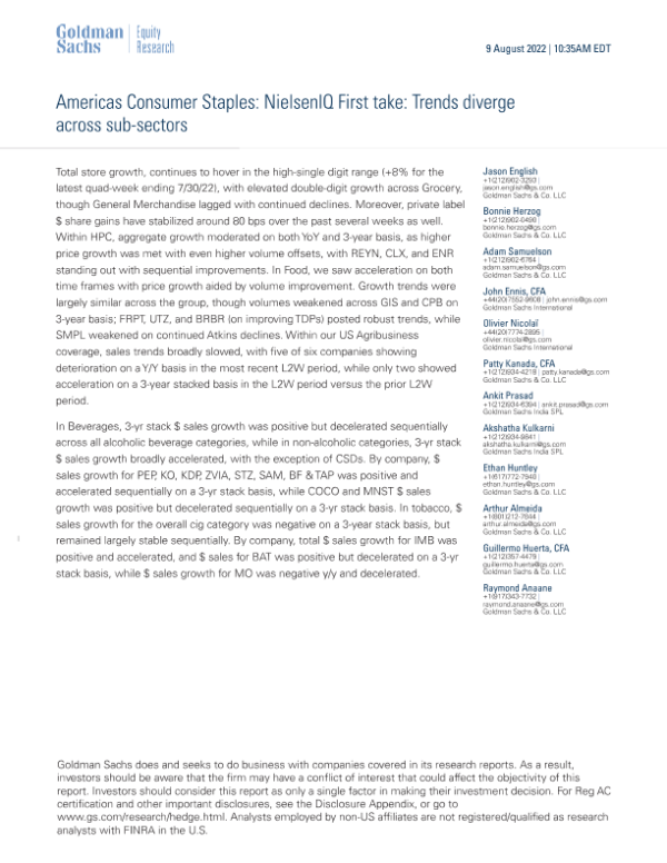 【Goldman Sachs】【20220809】Americas Consumer Staples NielsenIQ First take Trends diverge across sub-sectors-17页