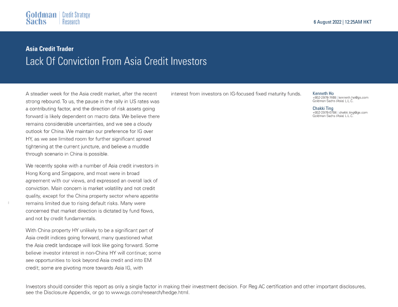 【Goldman Sachs】【20220806】Asia Credit Trader Lack Of Conviction From Asia Credit Investors-34页