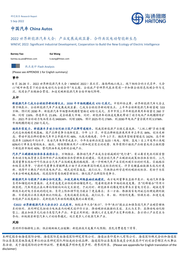 【海通国际】【20220905】2022世界新能源汽车大会:产业发展成效显著,合作共筑电动智能新生态-27页