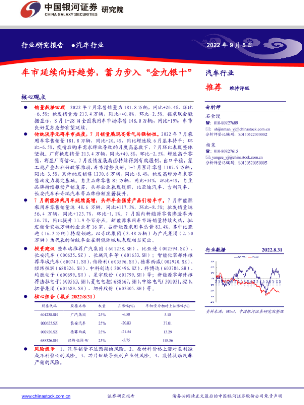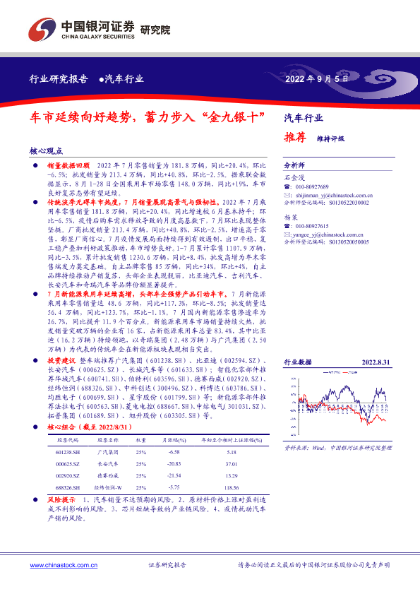 【银河证券】【20220905】20220905-中国银河-汽车行业:车市延续向好趋势,蓄力步入“金九银十”-19页