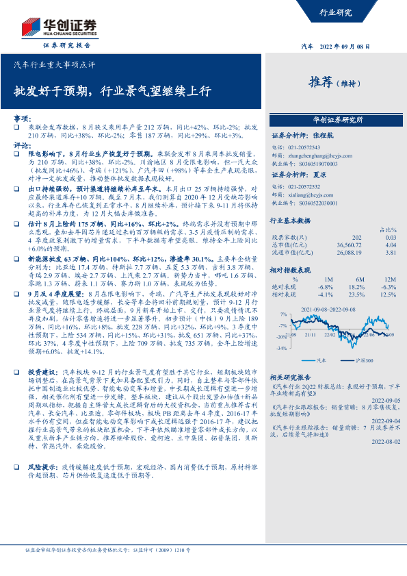 【华创证券】【20220908】汽车行业重大事项点评:批发好于预期,行业景气望继续上行-14页
