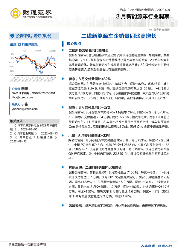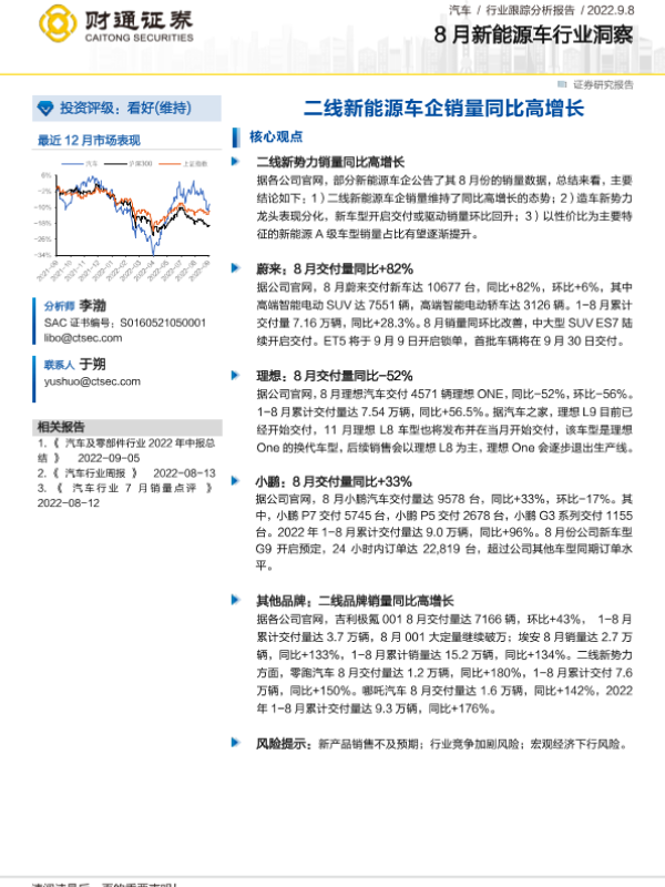 【财通证券】【20220908】8月新能源车行业洞察:二线新能源车企销量同比高增长-2页