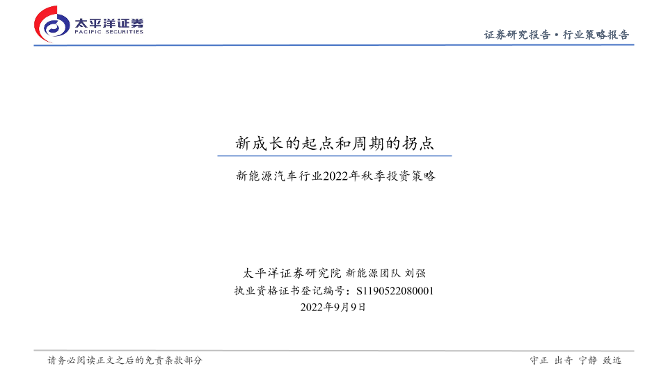 【太平洋证券】【20220909】新能源汽车行业2022年秋季投资策略:新成长的起点和周期的拐点-42页